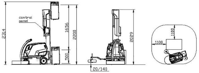 Оператору достаточно закрепить стрейч-пленку на грузе, выбрать программу обмотки на панели управления и нажать кнопку «СТАРТ». Машина самостоятельно вращается вокруг паллеты и оборачивает её пленкой. Такой подход исключает необходимость установки паллеты на поворотный стол и позволяет оборачивать грузы любых форм и размеров, при условии наличия ровного пола и пространства для перемещения машины.