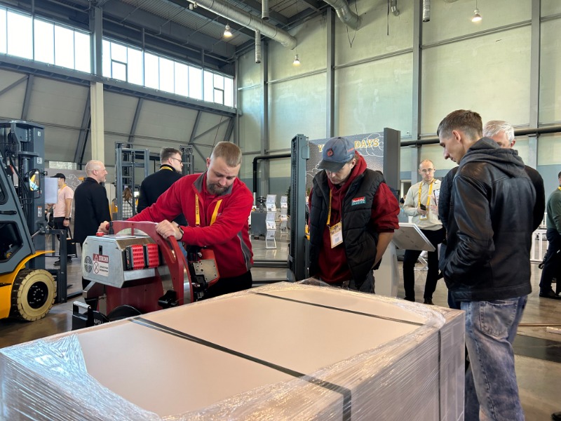 Уникальная машина, которая исключает физические усилия при вертикальной обвязке паллет ПП и ПЭТ лентой. Гости с интересом наблюдали, как гибкая стрела самостоятельно проходит под паллетом, что делает процесс быстрым и эргономичным.