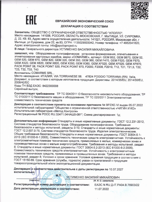 Comarme F2008 востребован в пищевой, фармацевтической, электронной, химической, логистической, косметической и других отраслях, где требуется высокая скорость, надежность и качество упаковки.